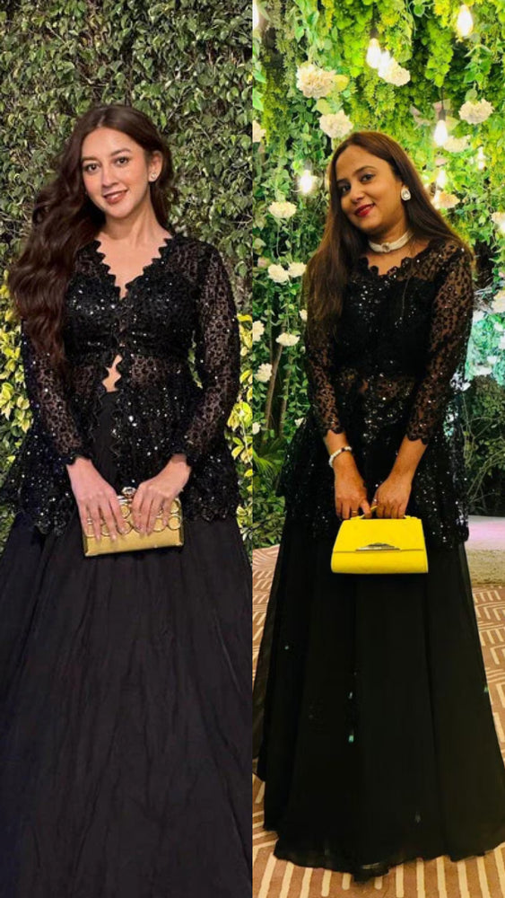 Guys, hands down this website is my go to shopping place for all my Indian wear. Wore this black peplum jacket top and skirt for my friends sangeet and received so many compliments.. all thanks to lehenga bazaar. The fabric was so good and comfortable to dance in. Would highly recommend you’ll to order.. the owner really helped me with all my qu...