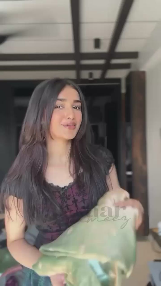 The dupatta, made of heavy tissue organza with delicate embroidery and a lace border, is a dream—so light and airy, yet so rich in detail. The heavy micro silk bottoms feel soft on the skin and complete the set beautifully.