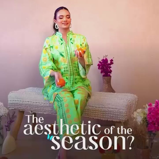 This Blooming Breeze Co-ord Set is a pastel-hued co-ord set adorned with delicate floral prints, the Blooming Breeze brings effortless charm and breezy comfort—perfect for brunches, getaways, and summer soirées.