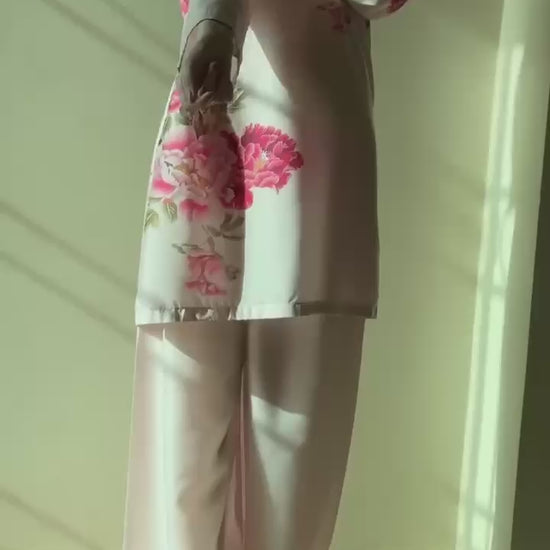 TOP FABRIC: Pure Natural Crepe Silk With Digital Print And Sleeves.