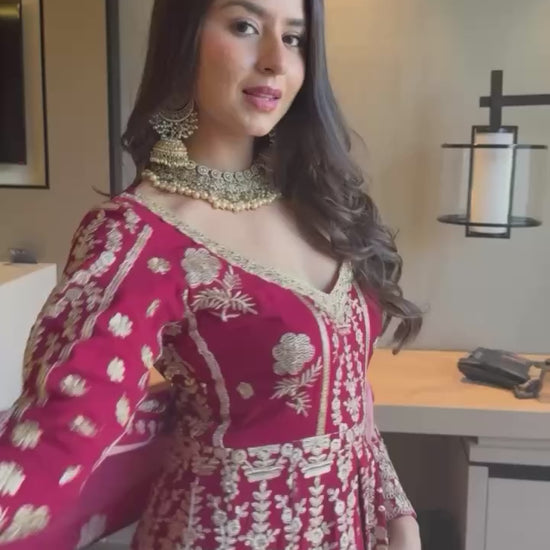 Gulnaz Zari Hot Pink Lehenga is a vibrant celebration of tradition and elegance. Crafted from luxe faux georgette, it features exquisite thread and sequence embroidery in radiant gold. Paired with a digitally printed dupatta and four-side lace border, this fully-stitched ensemble is perfect for weddings, sangeet, or festive occasions.