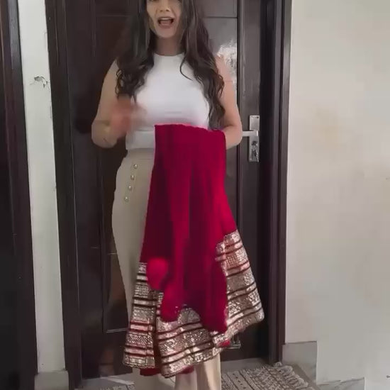 The Mahira Mehreen Anarkali Suit blends timeless elegance with modern charm. Crafted from rich fabric and adorned with intricate embroidery, it offers a graceful silhouette perfect for weddings, festive occasions, and special celebrations."
