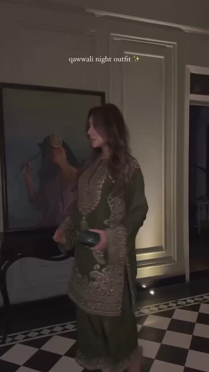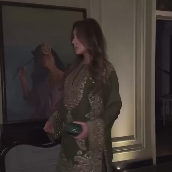 Mehfil-e-Hara Salwar Suit , A stunning green salwar suit crafted from premium fabrics, featuring intricate embroidery and delicate detailing. Designed for comfort and elegance, this outfit is perfect for festive occasions and special gatherings. The rich green shade adds a touch of royal charm to your wardrobe.