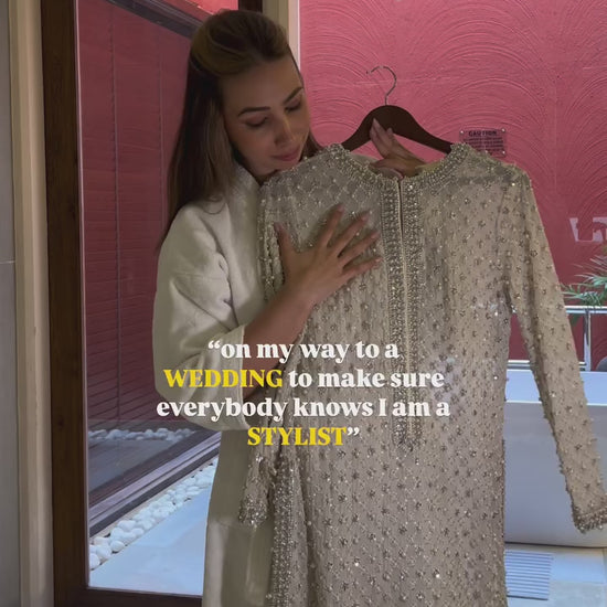 Pearl Moonlight Glow Suit is a soft, luminous outfit in pearl white with subtle shimmer detailing, exuding serene elegance. Paired with delicate embroidery and a flowing silhouette, it’s perfect for evening gatherings, festive occasions, or elegant daytime wear.