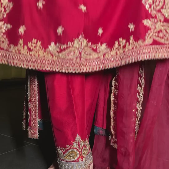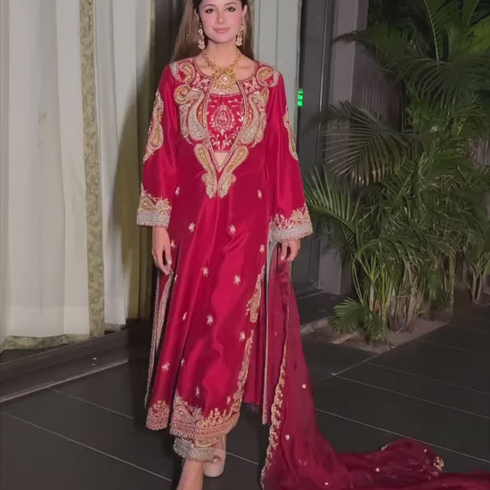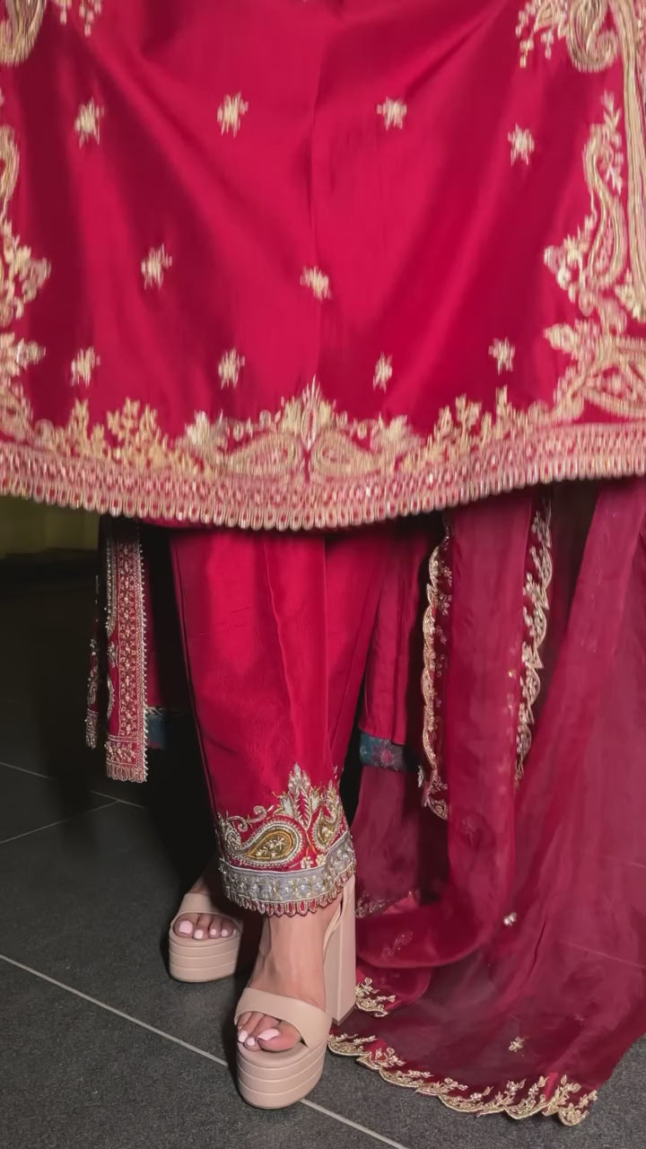 Rani-e-Laal Salwar Suit is a regal ensemble crafted in rich red hues, adorned with intricate embroidery and graceful detailing. Designed for the modern-day queen, this outfit blends traditional charm with timeless elegance — perfect for festive celebrations, weddings, and grand occasions.