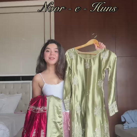 GHARARA PANTS FABRIC: Satin Silk With Sequins Embroidery Work.