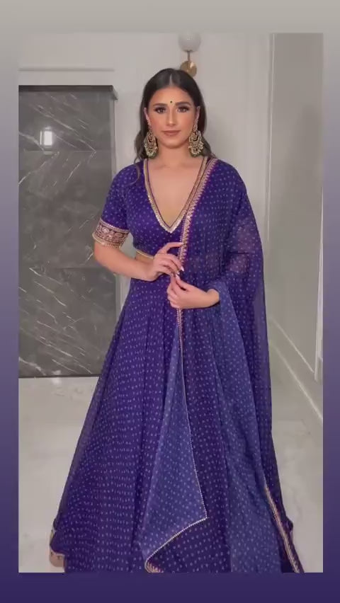 Zoya Zahra Lehenga Choli is a truly exquisite ensemble that will make you shine at every occasion. Crafted in soft purple georgette, it features delicate zari and thread work with a graceful border and attached canvas patta for a perfect fall. The matching blouse (1 meter unstitched) and printed dupatta with zari-thread border complete this stunning set. Lightweight and comfortable (1 Kg), this lehenga choli is perfect for weddings, festivals, or any special celebration — a piece that’s as elegant as it is charming.